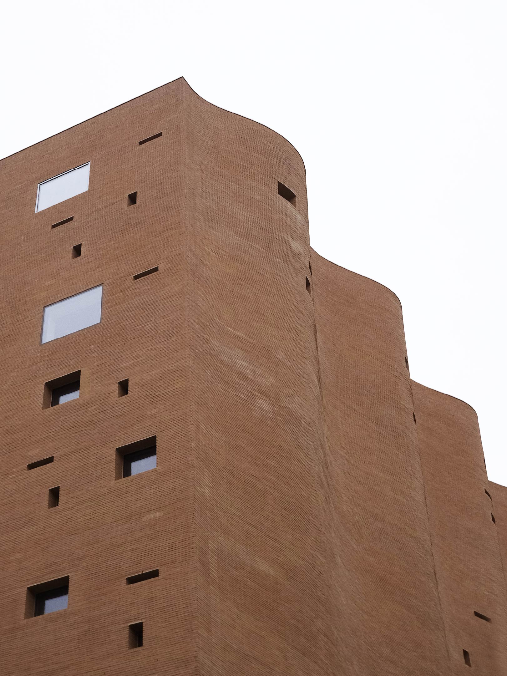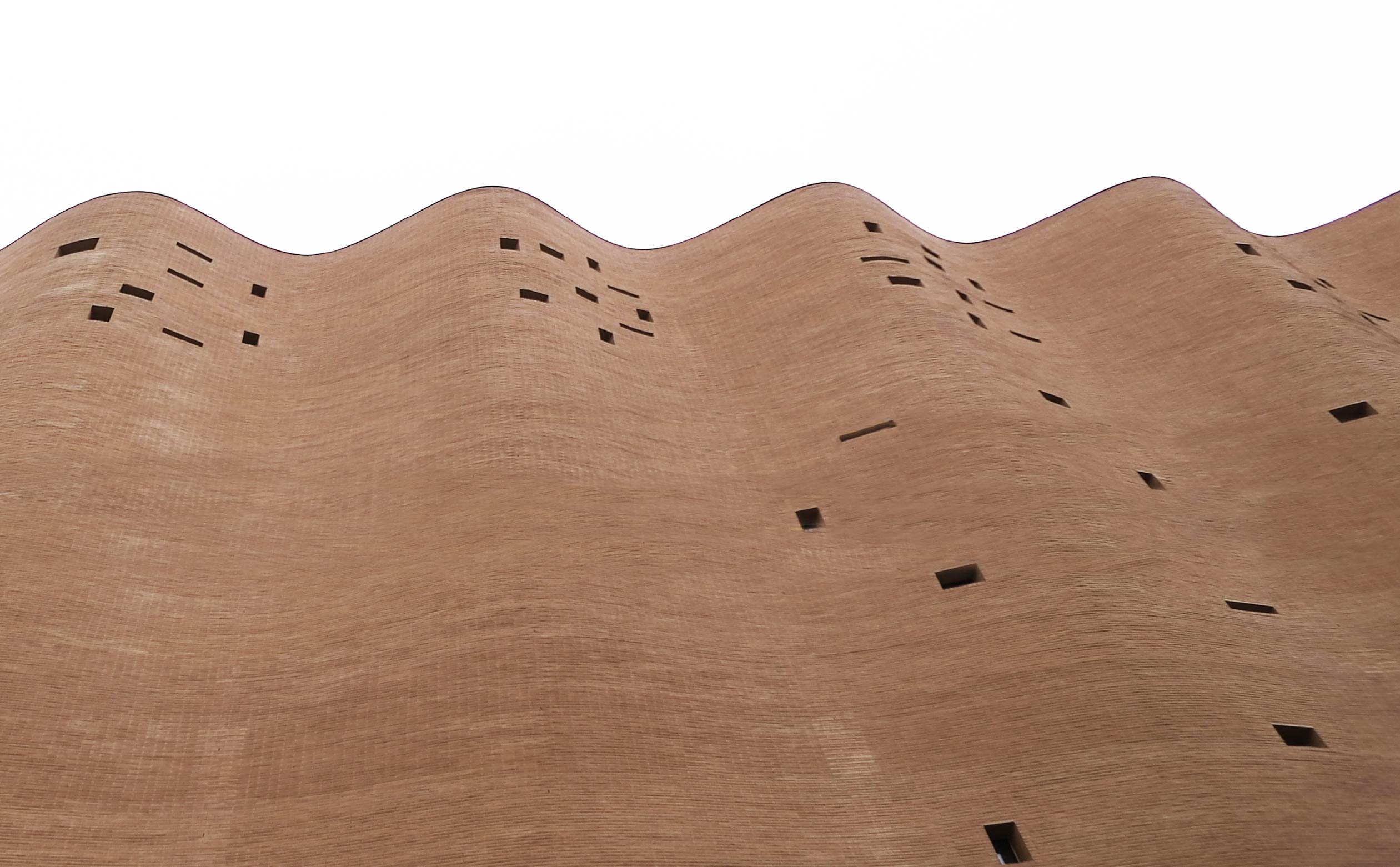 創立於1988年的韓國紡織品牌W-MISSION,由建築師林友寒帶領的德國建築師事務所Behet Bondzio Lin Architekten打造。W-MISSION 希望透過韓國傳統建築中常見的磚材,塑造出一座能聯想到「紡織布料」的品牌基地。建築以層層堆疊的磚牆構成流動的立面,柔和的弧線取代銳利的稜角,讓厚重的材質呈現如布料般的流動感。
