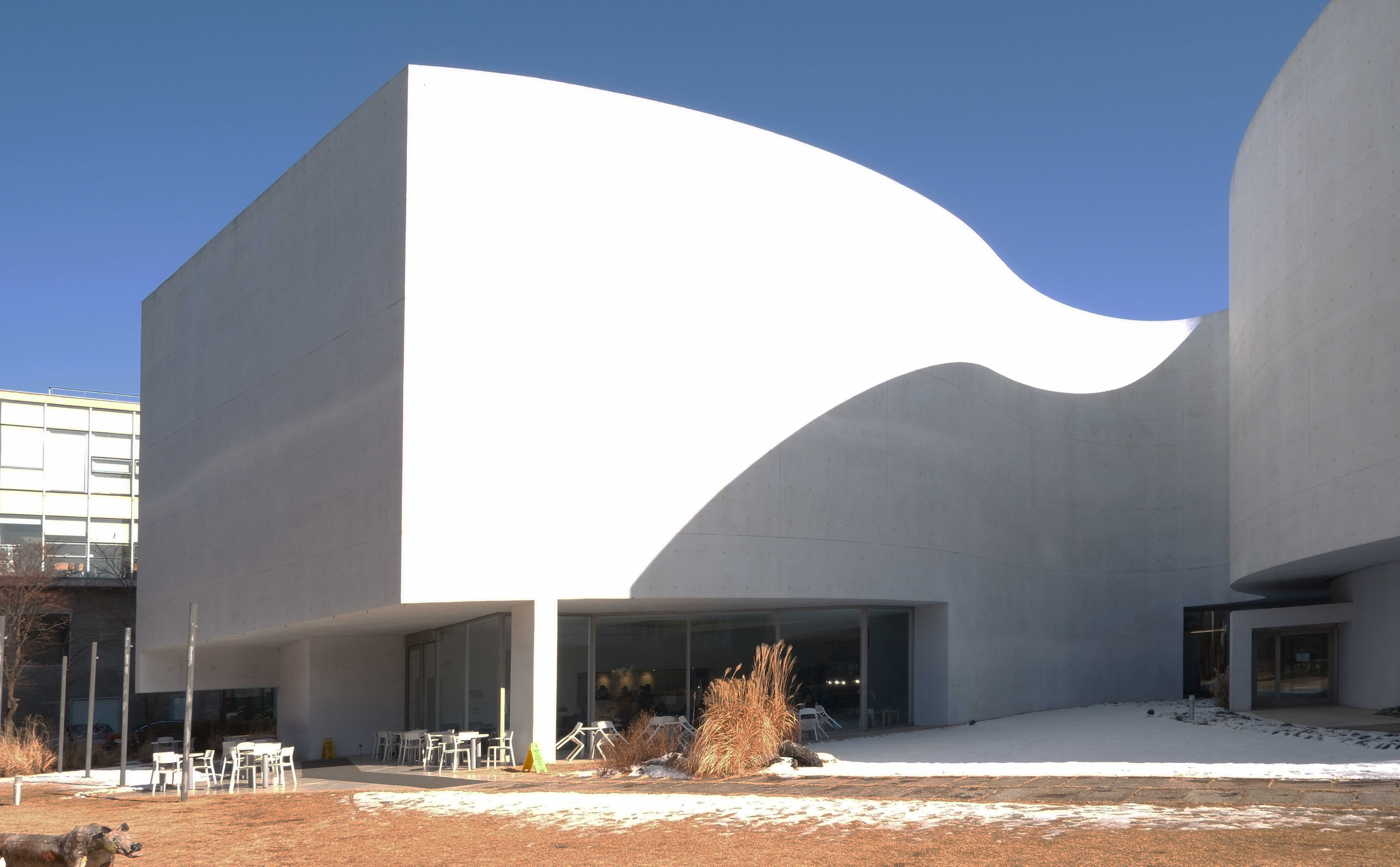 在設計理念上,Álvaro Siza延續他一貫對「光、空間與人體尺度」的細膩掌握。美術館的外觀以白色混凝土構成,整體量體並非方正,而是由柔和曲線組成,彷彿一隻靜靜蜷伏的貓。