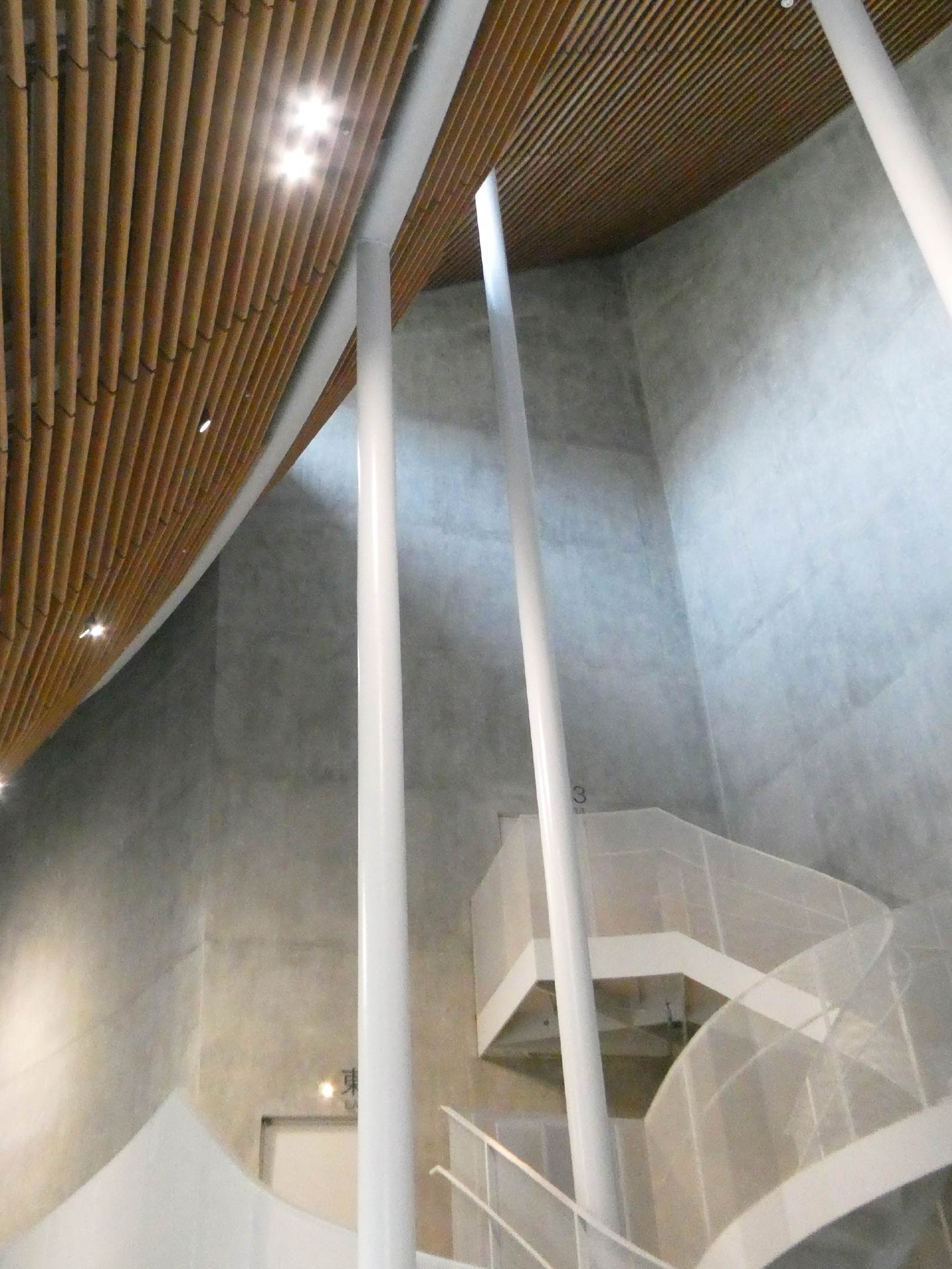 空間氛圍上,鶴岡文化館呈現出一種極度輕盈與透明的感受。大量使用玻璃作為外牆,使自然光能夠自由滲透室內,並將戶外的街景與綠意引入空間之中。屋頂與細緻的結構柱體讓建築幾乎失去重量感,行走其中,彷彿置身於一片被光包覆的場域,安靜卻不疏離。室內設計的特色則在於其開放且多功能的使用方式。不同尺度的圓形空間可靈活作為展覽、講座或社區活動使用,沒有固定的使用限制。